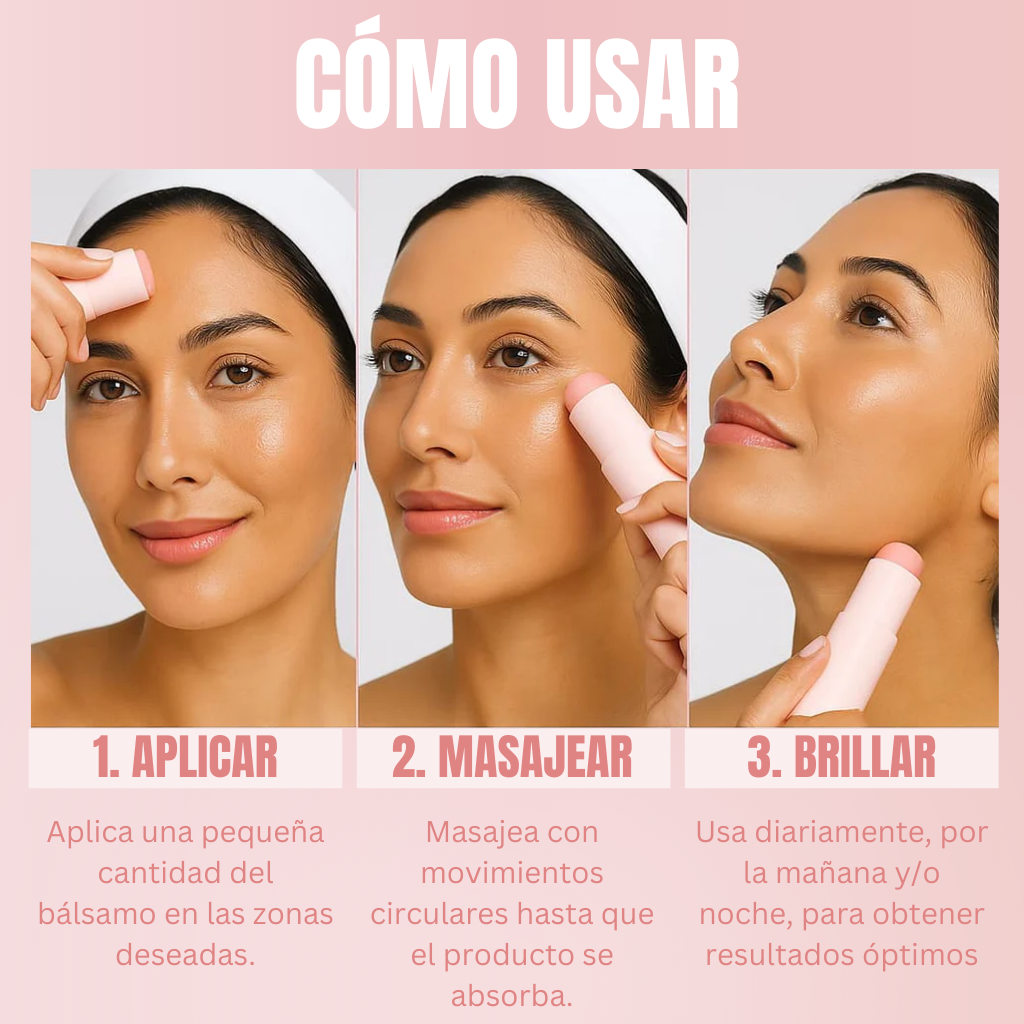 - Aplica el bálsamo en zonas clave: frente, contorno de ojos, labios y mejillas.